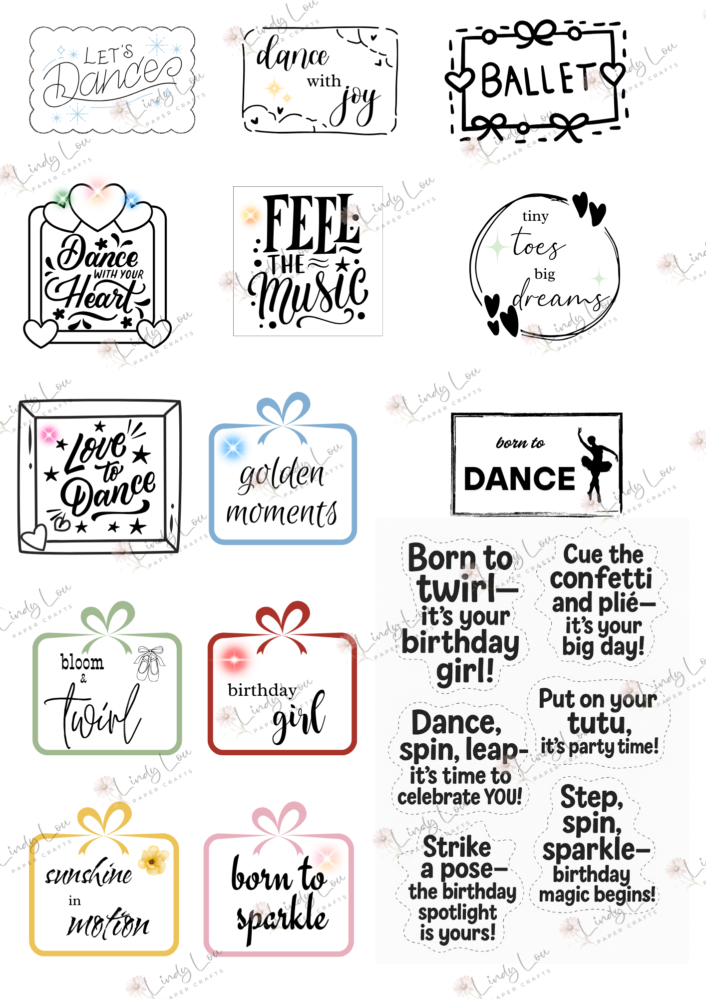 Lindy Lou Paper Crafts are designed and printed in Australia on 200gsm premium cardstock.